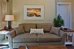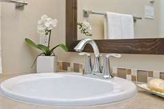 The Cedarview vacation rental is welcoming you home after a long day in nature. Its cozy layout promotes stimulating conversation, while its loft room with added storage offers a comfortable nook for you and your family to watch a movie after a busy day at the beach. The warmth of the paint colours, wood, tile, and stonework form the backdrop for the perfect end to your fun-filled day at Oceanside Village Resort.